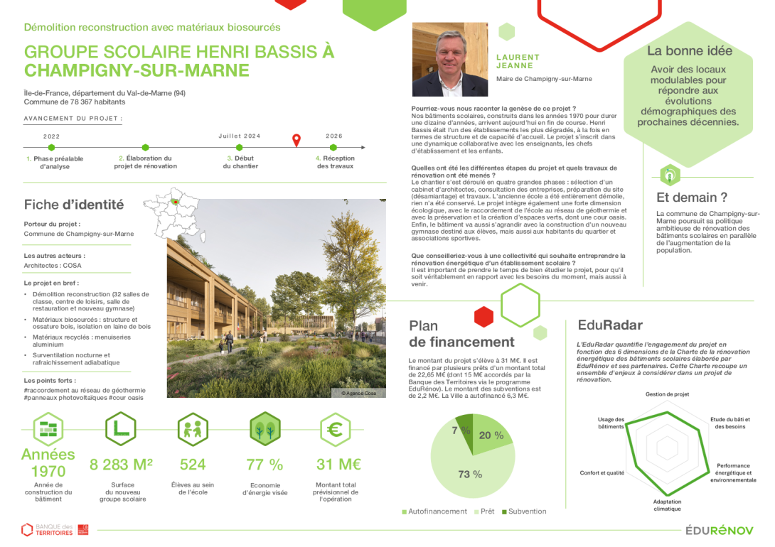 Fiche cas d'école : démolition reconstruction avec matériaux biosourcés d'un groupe scolaire à Champigny-sur-Marne (94)