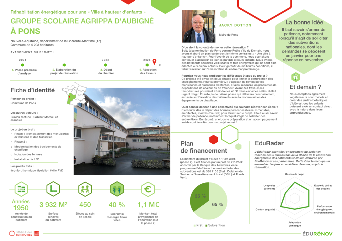 Fiche cas d'école : réhabilitation énergétique d'une école à Pons (17) pour une "Ville à hauteur d'enfants"