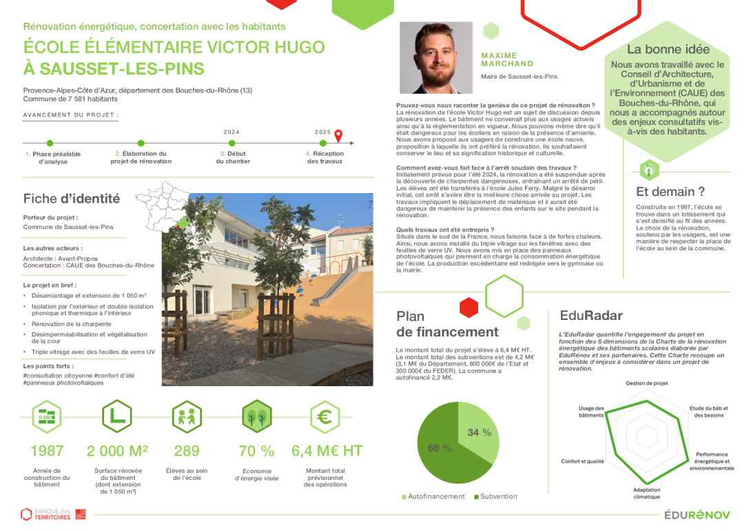 Fiche cas d'école : rénovation énergétique d'une école avec concertation des habitants à Sausset-les-Pins (13)