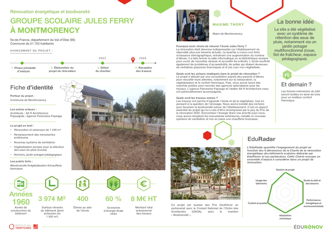 Fiche cas d'école : rénovation énergétique d'une école avec prise en compte de la biodiversité à Montmorency (95)