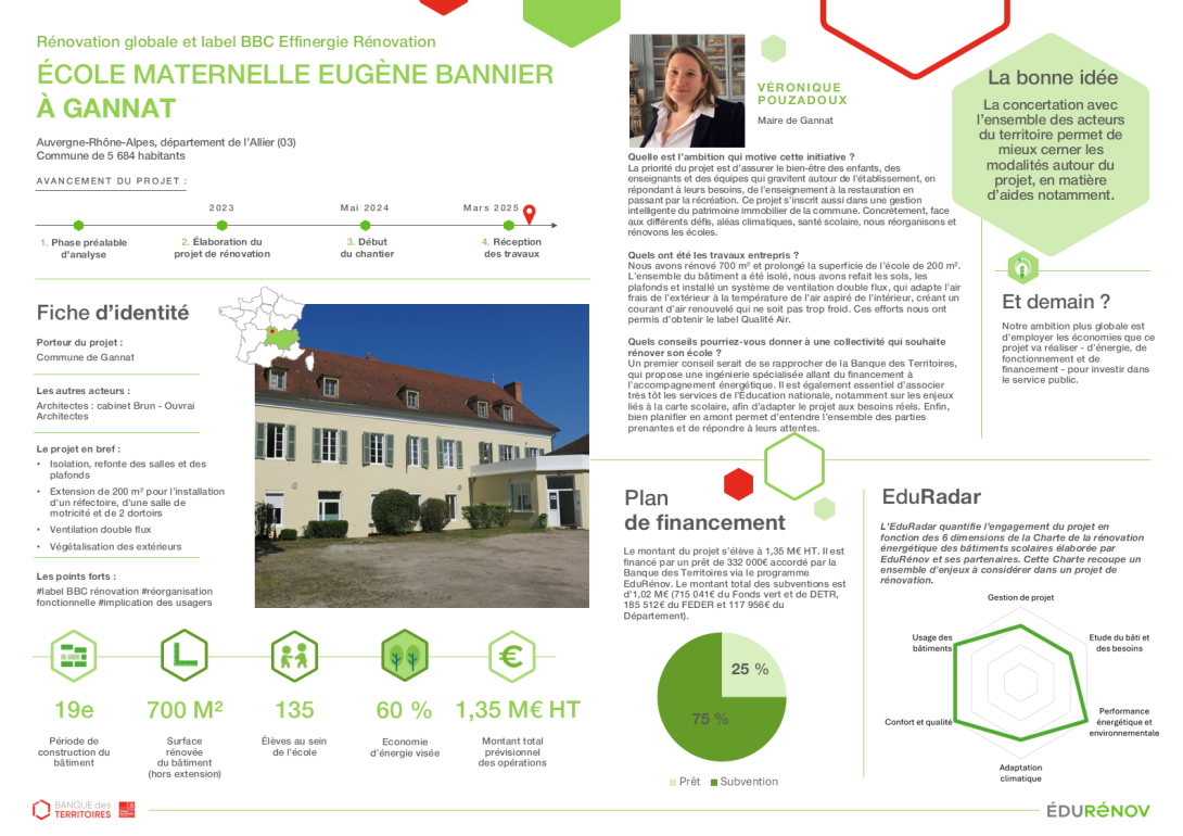 Fiche cas d'école : rénovation globale d'une école avec label BBC Effinergie Rénovation à Gannat (03)