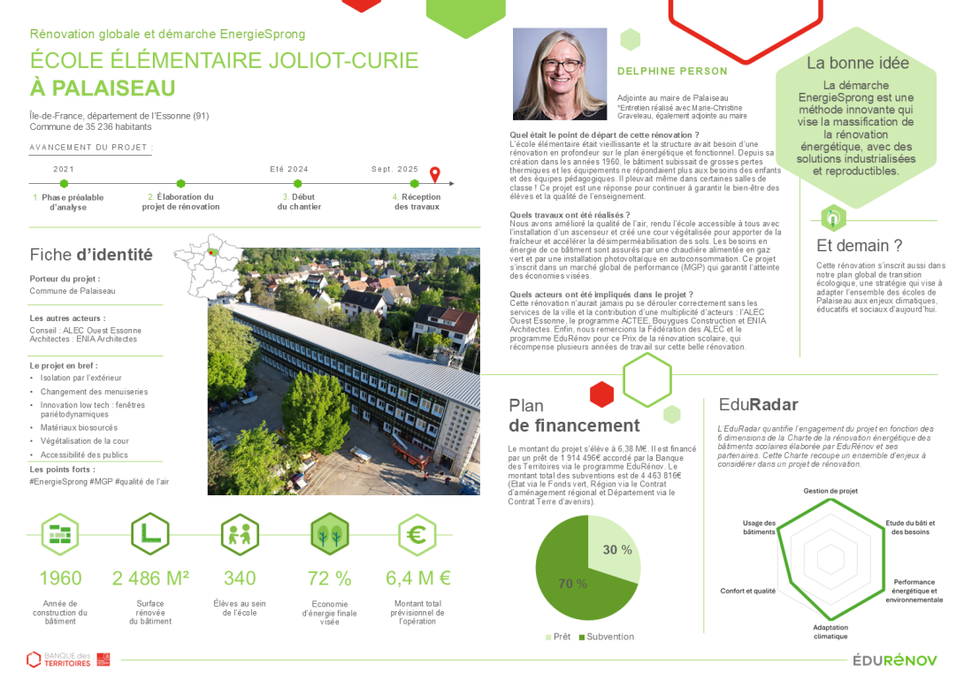 Fiche cas d'école : rénovation globale d'une école en démarche EnergieSprong à Palaiseau (91)
