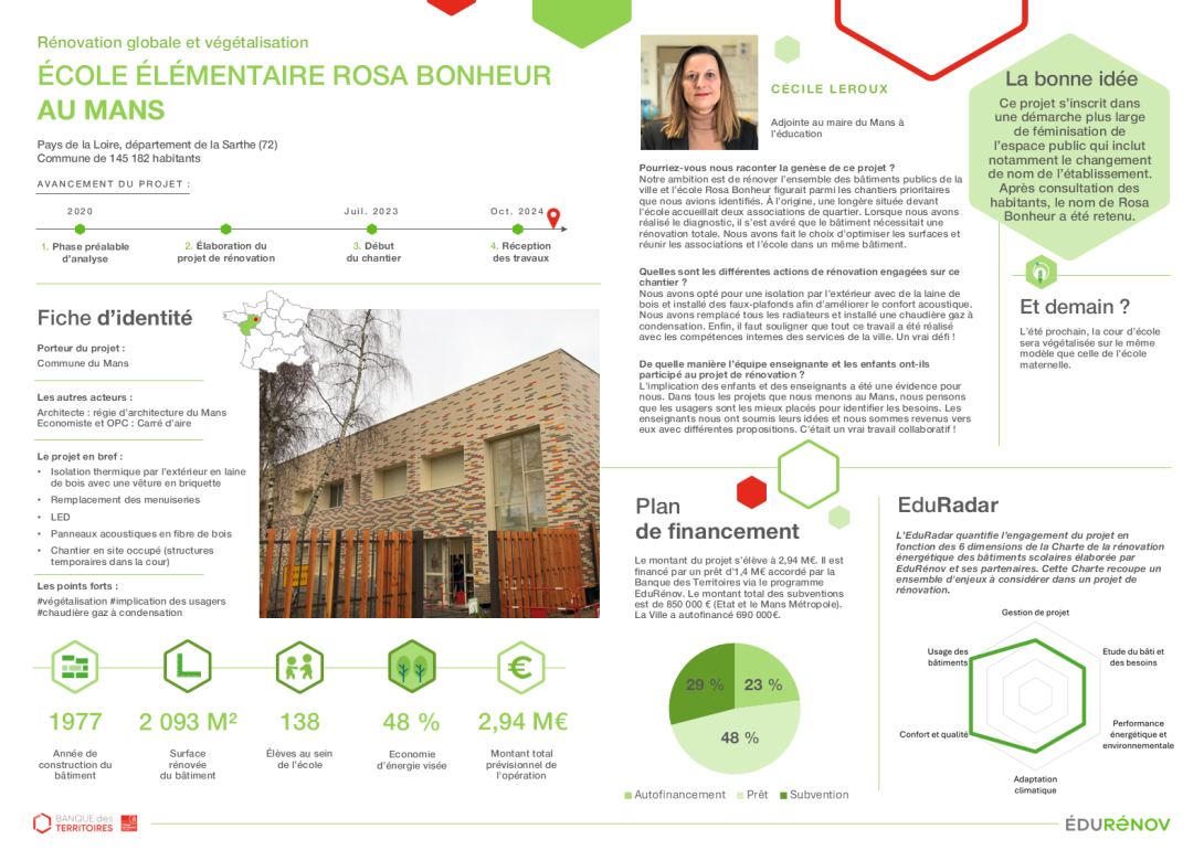 Fiche cas d'école : rénovation globale et végétalisation d'une école au Mans (72)