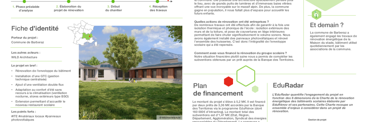 Fiche cas d'école : rénovation globale d'un groupe scolaire avec matériaux locaux à Barberaz (73)