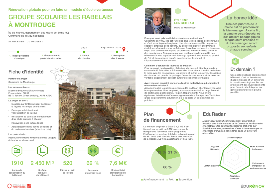 Fiche cas d'école ; rénovation globale d'un groupe scolaire pour en faire un modèle vertueux à Montrouge (92)