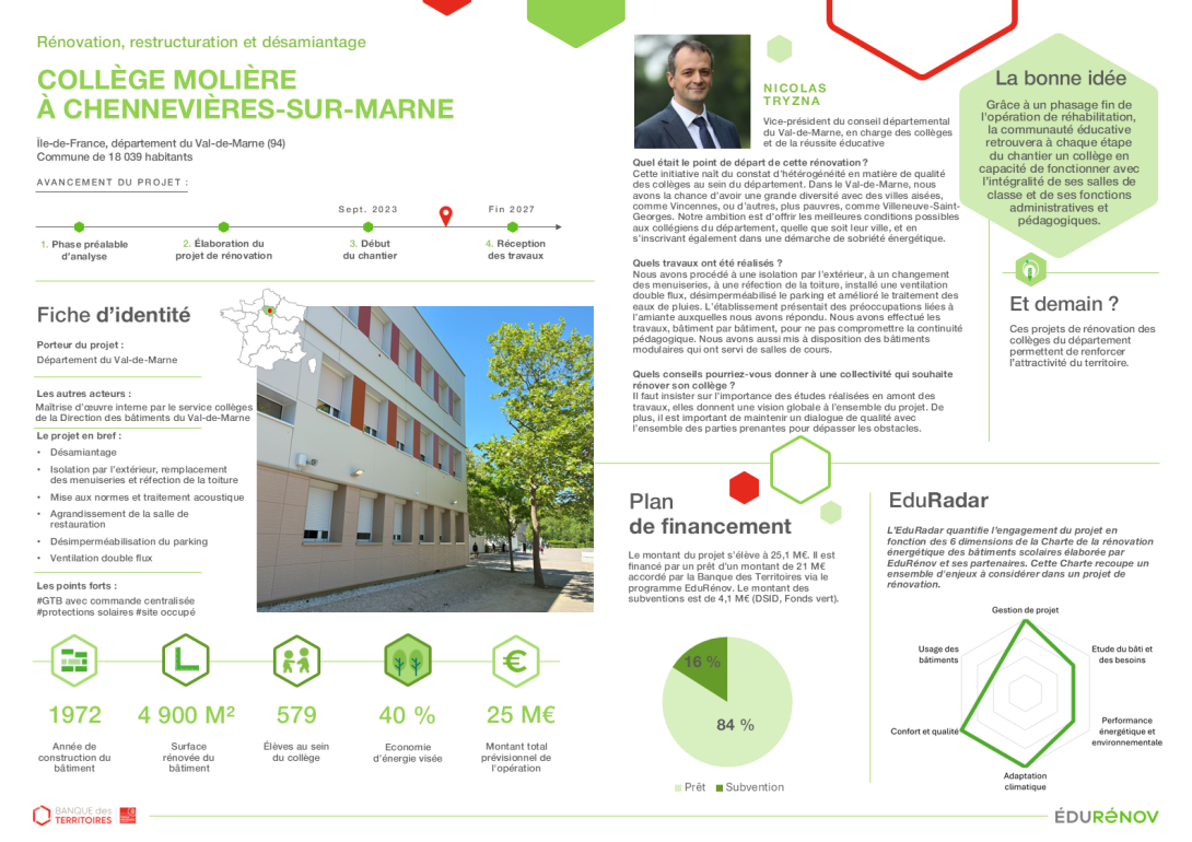 Fiche cas d'école : rénovation, restructuration et désamiantage d'un collège à Chennevières-sur-Marne (94)