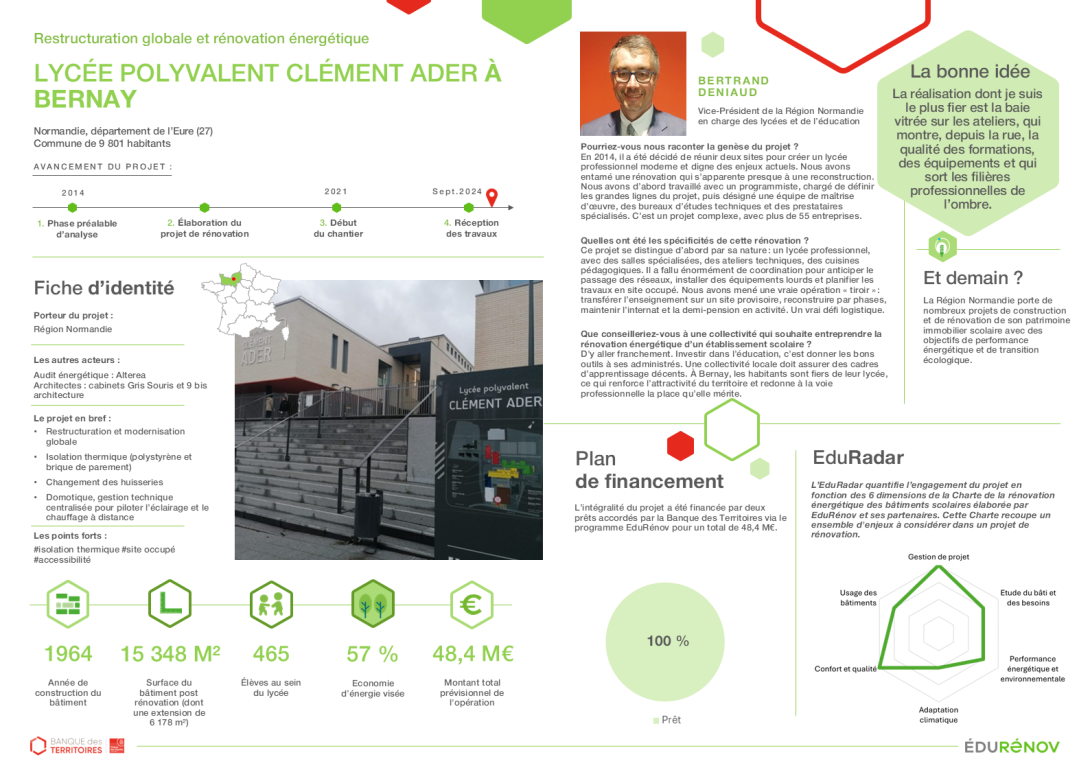 Fiche cas d'école : restructuration globale et rénovation énergétique d'un lycée à Bernay (27)